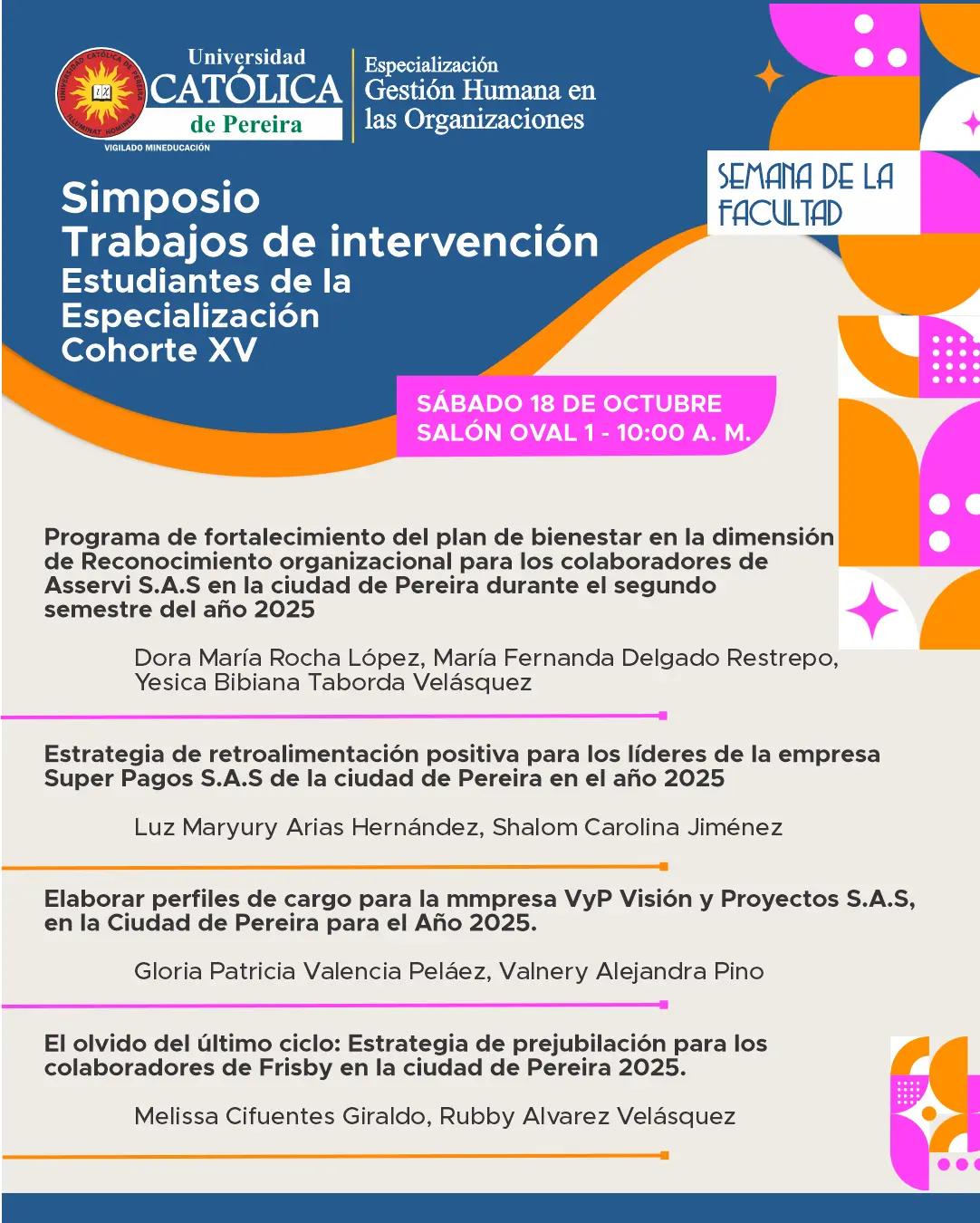 Simposio Trabajos de intervencíon Estudiantes de la Espealizacíon Cohorte XV
