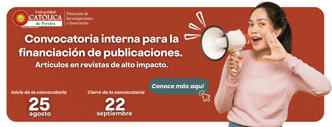 La Universidad Católica de Pereira reconoce el carácter universal del conocimiento y por ello promueve una investigación de alto rigor científico, que estudie problemas con contexto global y que tenga la capacidad para impactar diferentes escenarios de interés regional, nacional e internacional. A través del diálogo permanente con instituciones y pares internacionales, valida y enriquece su labor investigativa y busca la divulgación del conocimiento que genera en diferentes ámbitos académicos, científicos y sociales, con el fin de ampliar sus posibilidades de desarrollo e impacto.