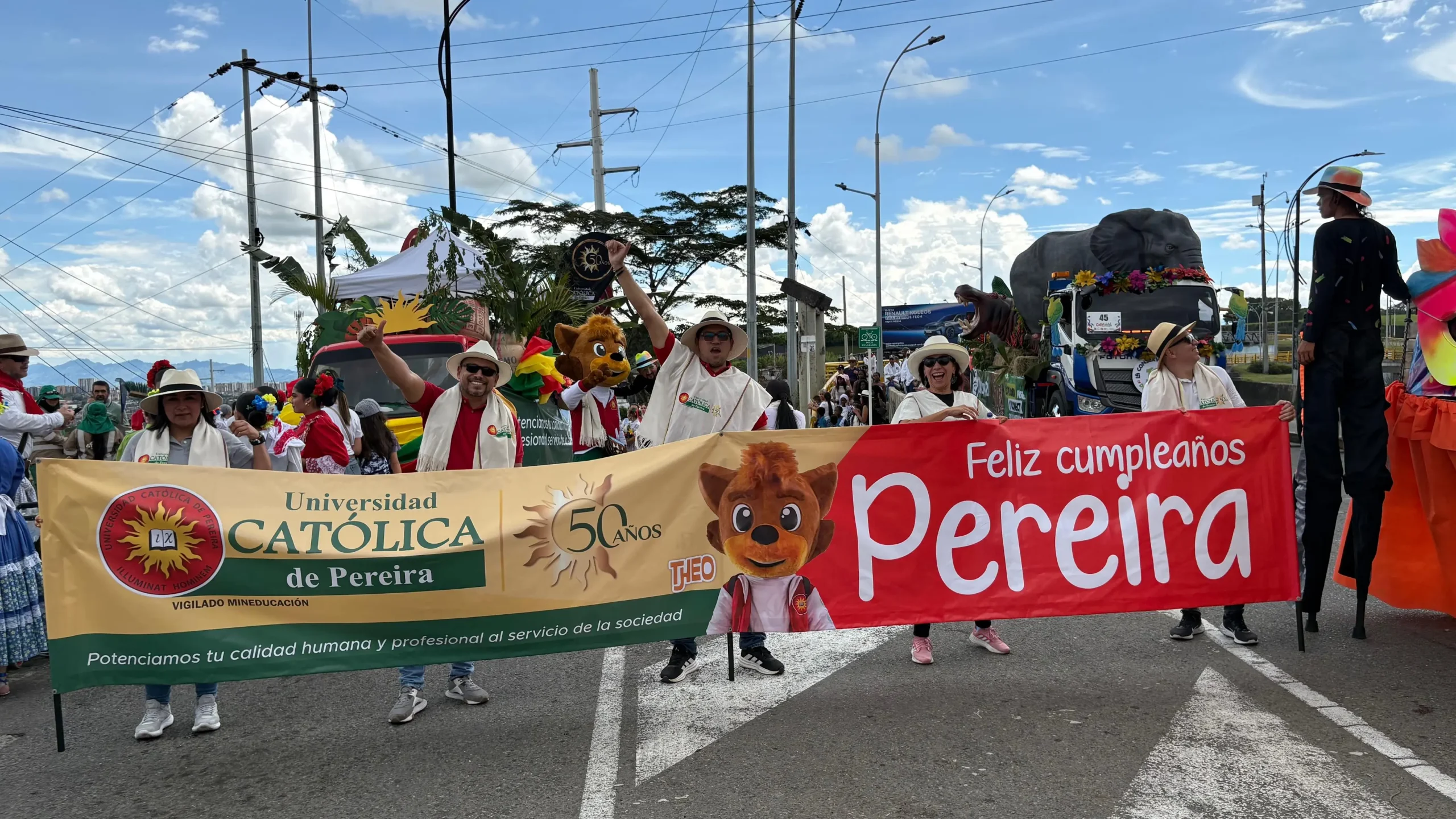 Con la participación en el Desfile Carnaval de la Cosecha, la Universidad Católica de Pereira se vinculó a la celebración de los 162 años de Pereira con una comparsa alusiva a la región cafetera, grupos musicales, baile típico y la presencia de representantes de los administrativos, estudiantes, graduados y profesores.