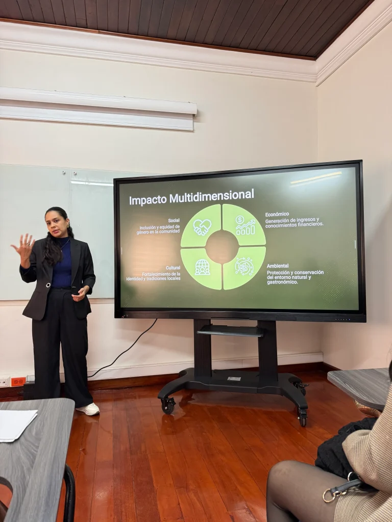 Asimismo, la docente del programa de Diseño Industrial, Daniela López presentó la ponencia “Ecoeficiencia y emprendimiento femenino en Punta Soldado” en el panel “Género, tecnología y territorio”, exponiendo los avances del proyecto que se viene desarrollando junto con la Facultad de Ciencias Económicas y Administrativas, que busca fortalecer el emprendimiento y la autonomía económica de las mujeres en contextos como Punta Soldado a través de soluciones tecnológicas sostenibles.